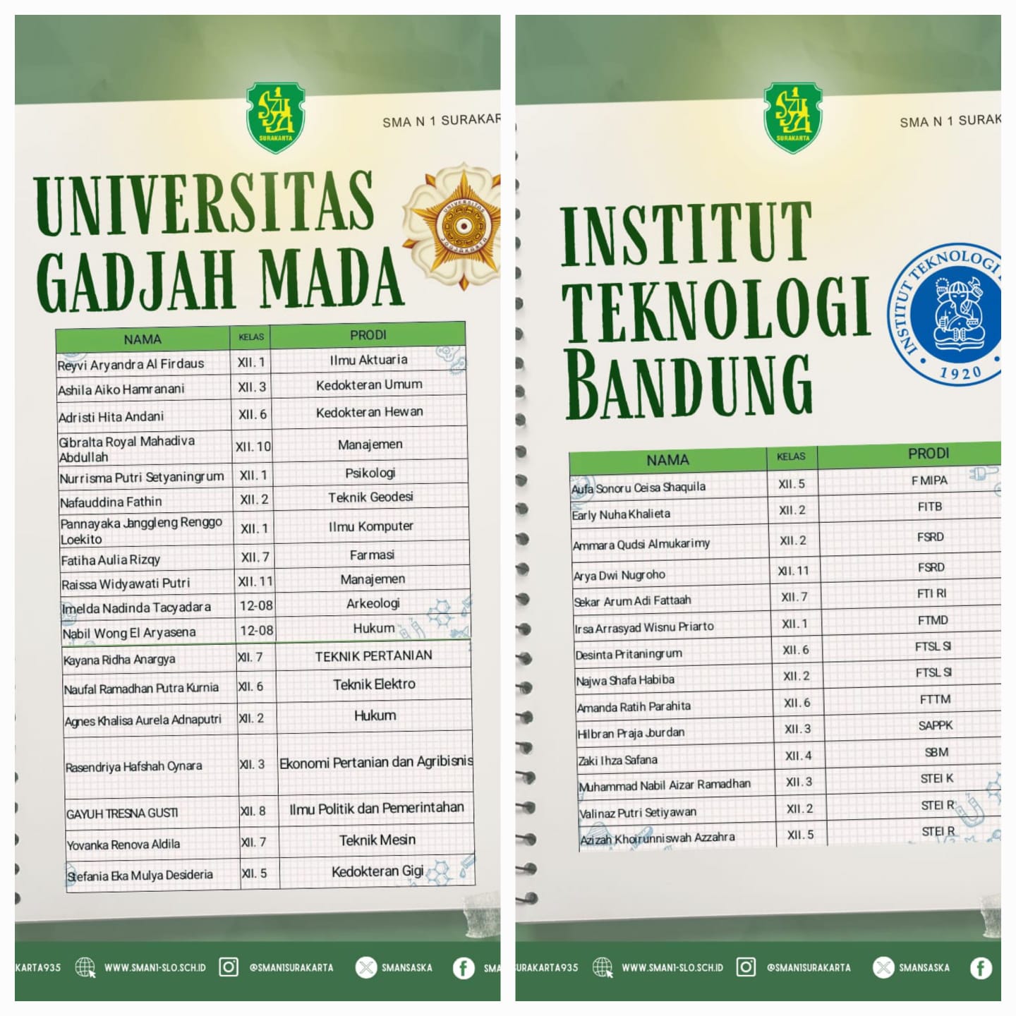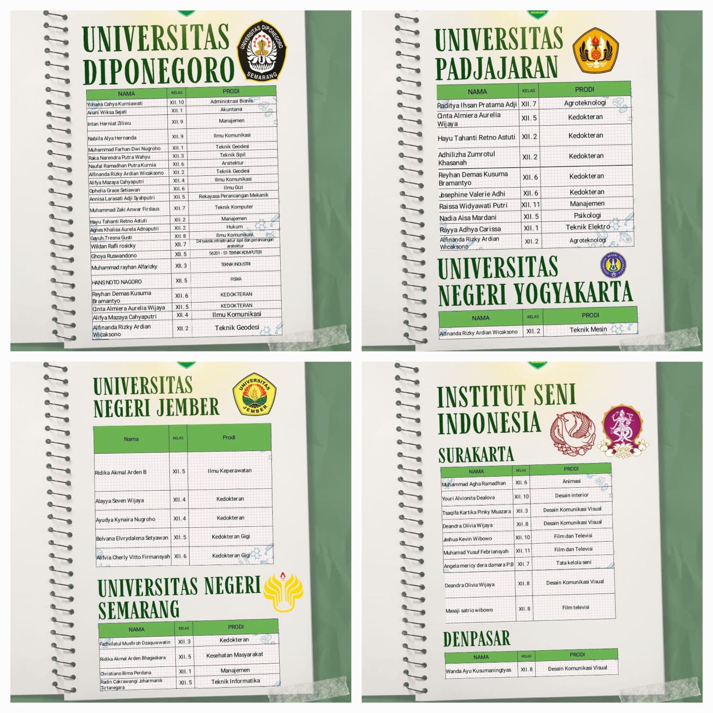 UNDIP, UNJEM, UNNES, UNPAD, UNY, ISI SOLO, ISI DEN